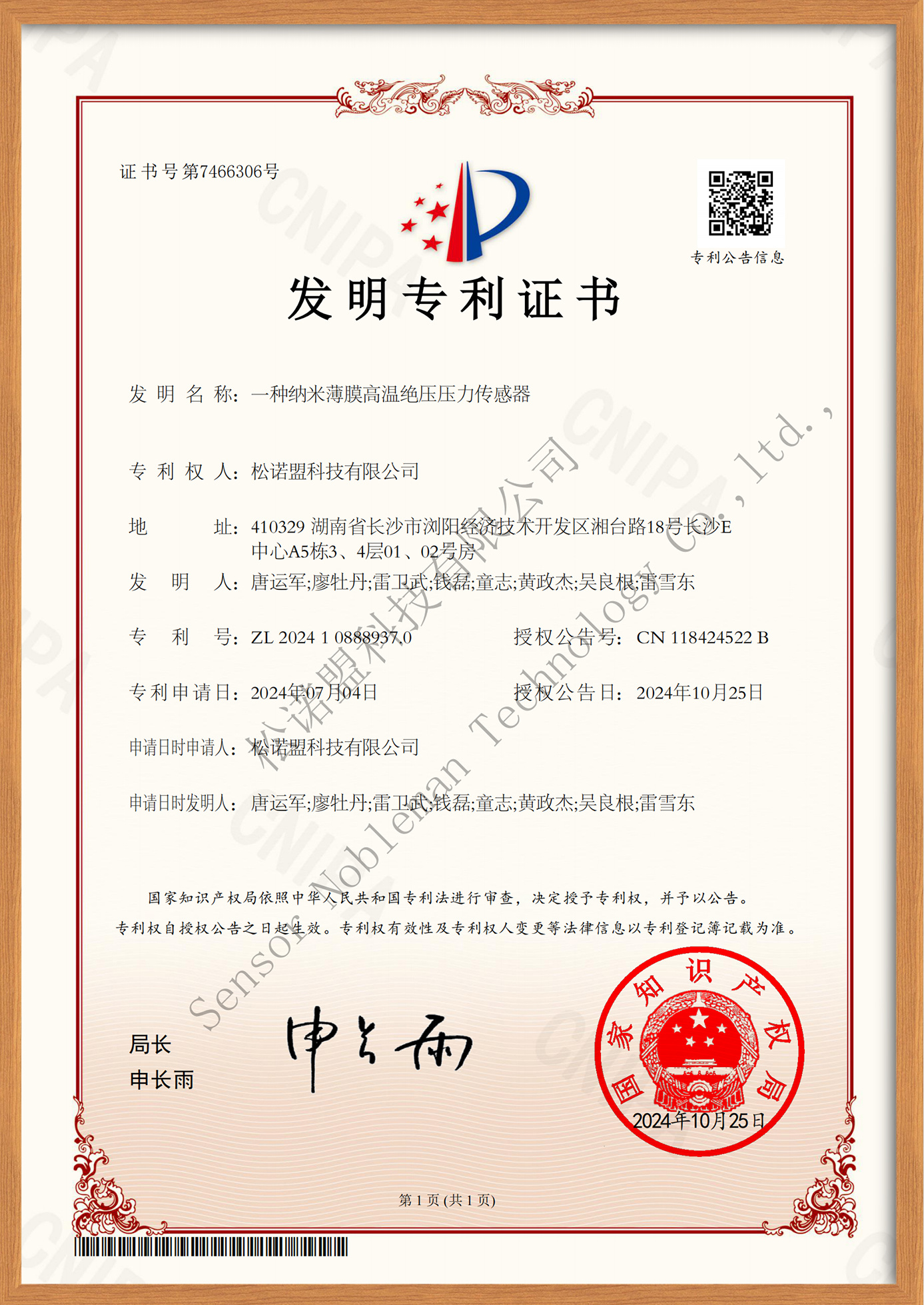 65-俄罗斯发明专利证书-一种小体积高温压力变送器