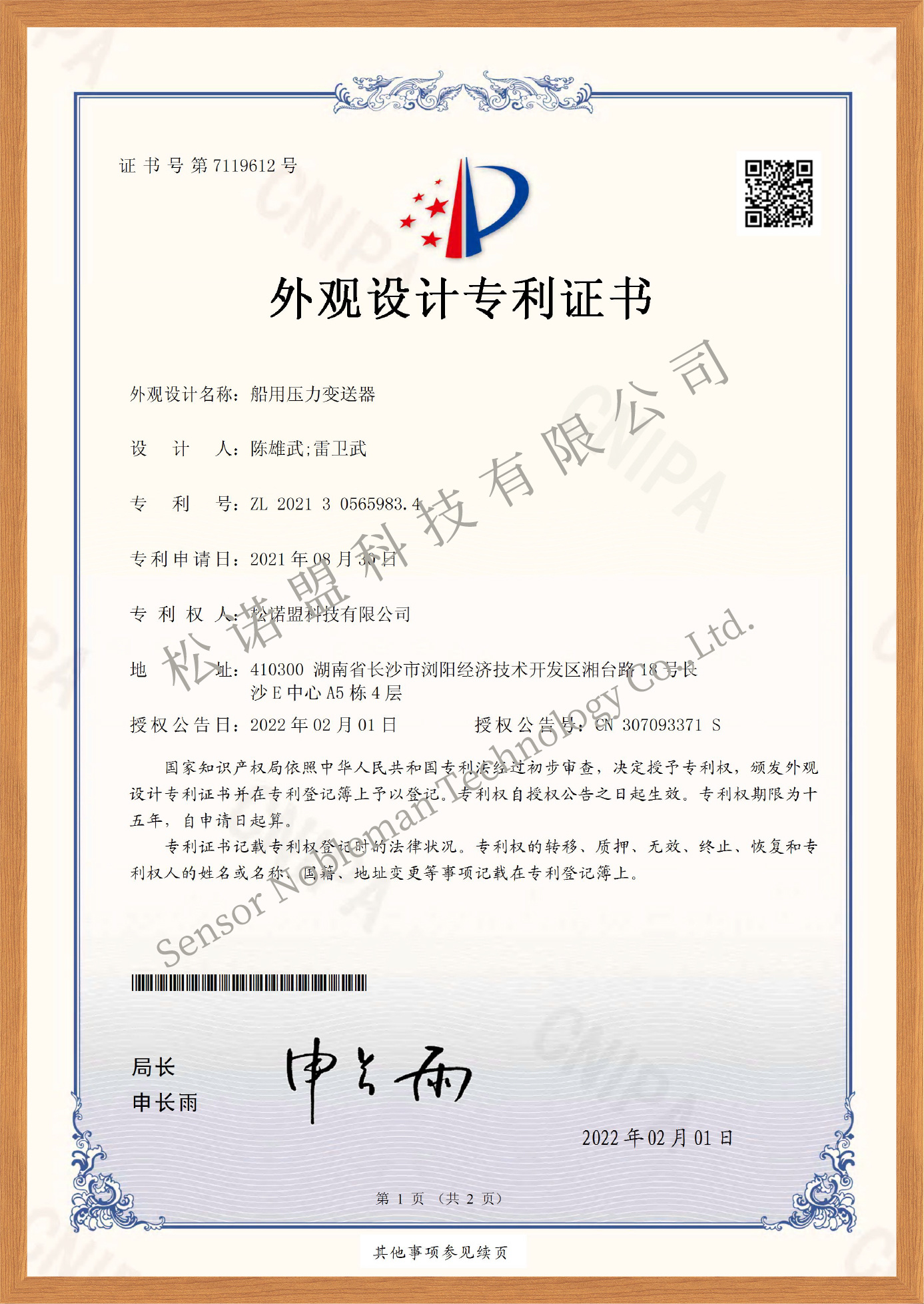58-船用压力变送器-外观专利